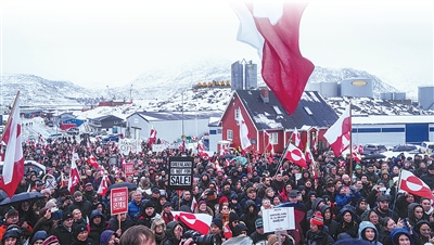 1月17日,在丹麦自治领地格陵兰岛首府努克的美国领事馆前,人们参加示威游行,抗议美国企图“控制”或“购买”格陵兰岛。新华社发