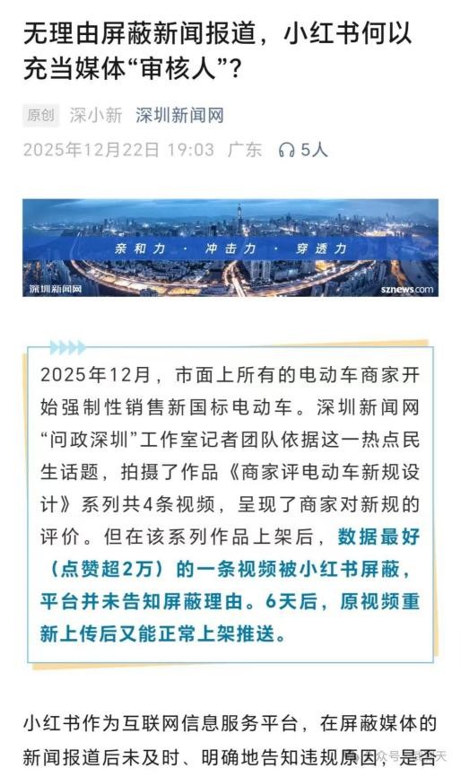 而小红书作为商业平台,在限制该新闻内容可见性时,既未说明具体理由,也未履行应有的通知义务。